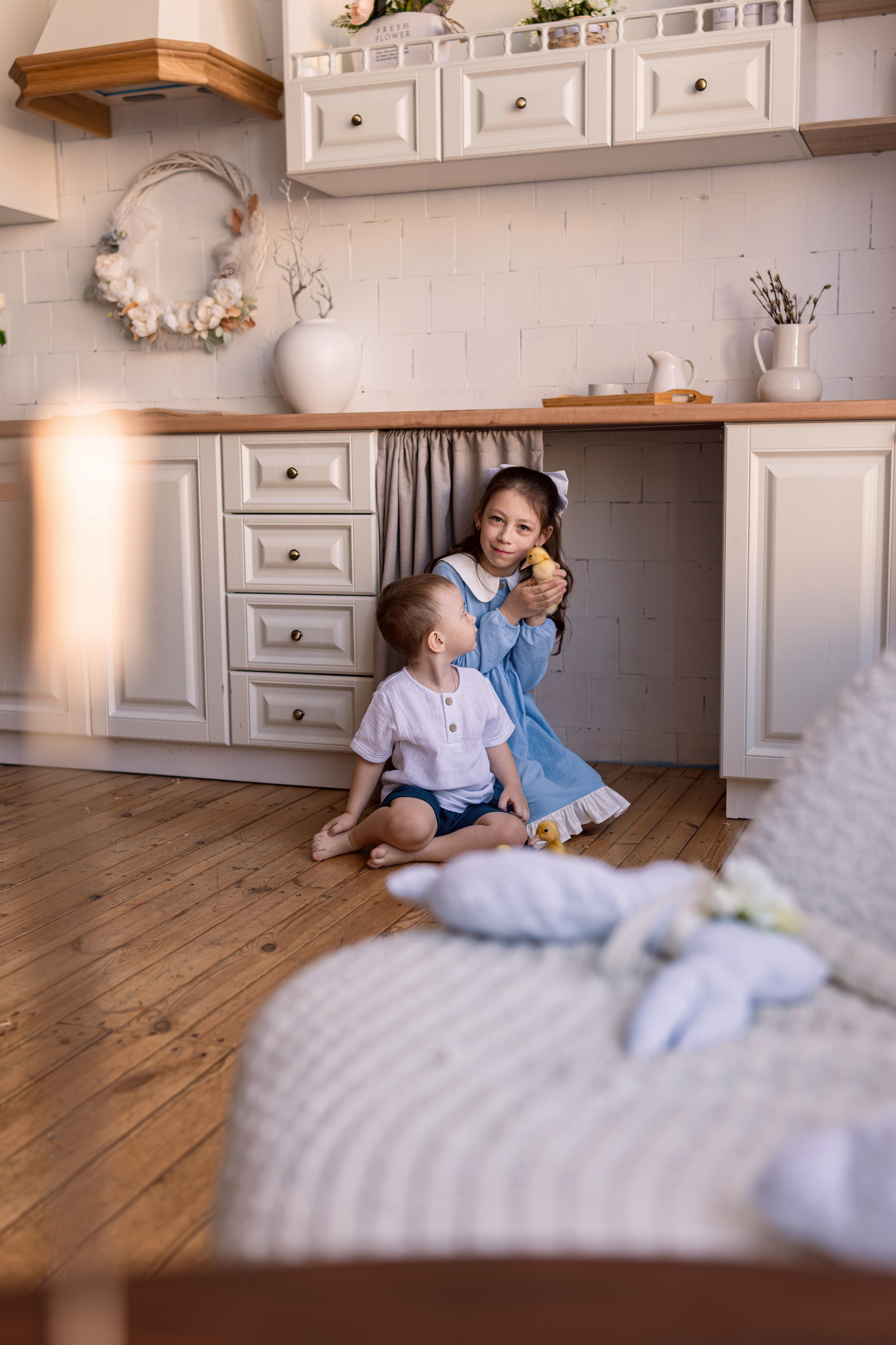 Ксения, Кирилл и Кристина в цветущем саду